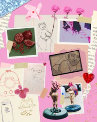 Kitty is a traditional and digital artist, primarily depicting human experience in her art, with her main artistic focus being herself. As Frida Khalo put it, “I am the subject I know best.”